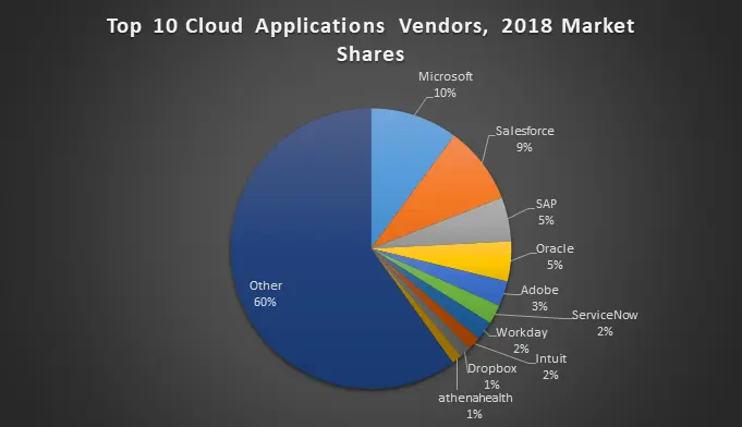 Exhibit 1 – Top 10 Cloud Applications Vendors and Their Market Shares in 2018