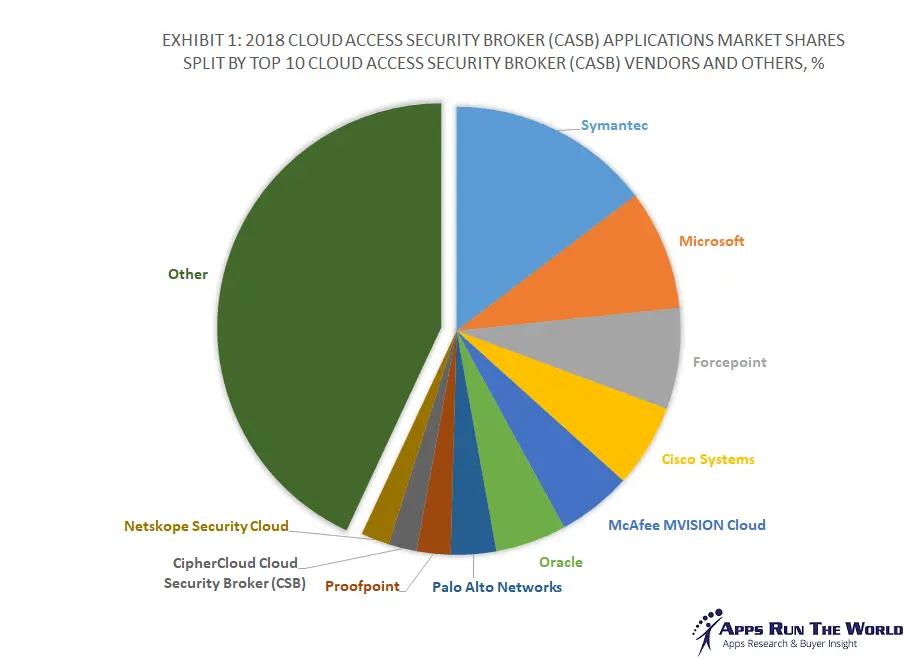 In 2018, the top 10 CASB software vendors accounted for approximately 57% of the global Cloud Access Security Broker applications market which grew 34% to approach $2.1 billion.Â